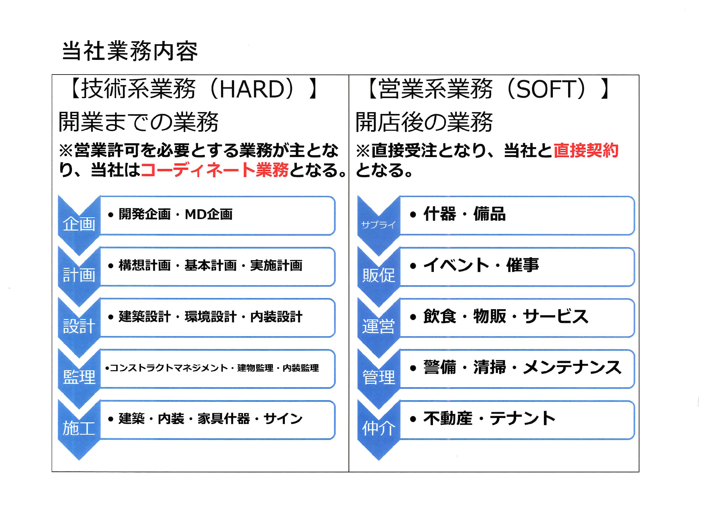 | 業務内容 | 建築全般及び特殊造形(フェイク造形)に関する企画・設計・施工、コンサルティング 家具に関する企画・輸入及び販売・卸し 飲食店舗・物販店舗の経営企画コンサルタント 日用品雑貨の製造及び販売 コンピュータのソフトウェアの開発及び販売 |
