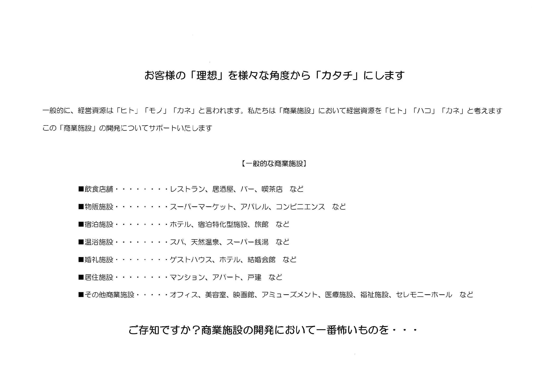 | 2010年~2012年 | 国土交通認証可 全国室内環境改善事業協同組合 発足企画サポート 北山総合事務所 太陽光発電システム 販売企画 ウェディングヴィラ・アンビジュー芦屋 増改築計画 設計・施工管理 クラブローゼス表参道 新装計画 設計・施工管理 ローザブランカ表参道 新装計画 設計・施工管理 セントローゼス小山 改造計画 設計・施工管理 瀬戸内開発 東京事務所開設サポート 東建コーポレーション 賃貸マンション キッチン(ナスラック機器)導入提案 |